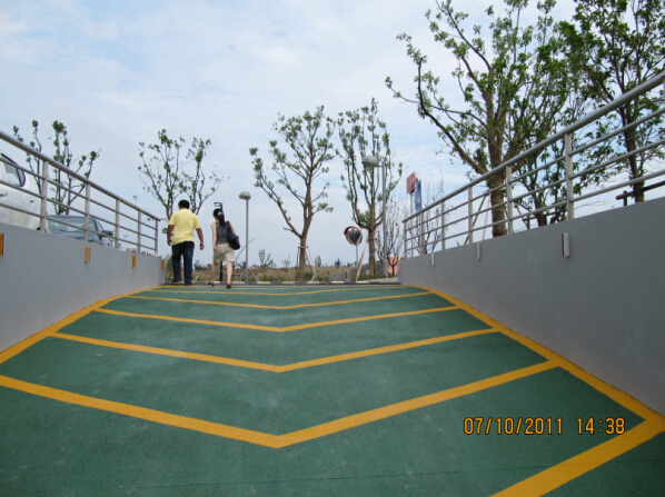 無震動防滑坡道是使用在車庫進(jìn)出口位置的防滑地面,防滑坡道一般分為進(jìn)出口,不同方向設(shè)置不同的箭頭,以此來區(qū)分進(jìn)出口,方向箭頭是由兩種顏色搭配而成,所以一般施工無震動防滑坡道都選擇兩種顏色的材料。