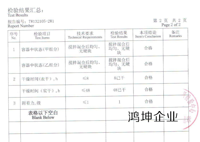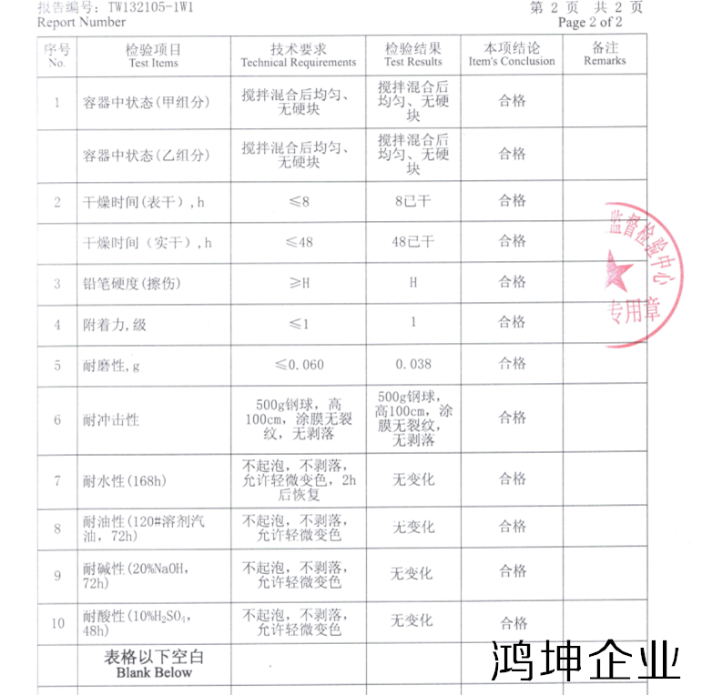 以下是鴻坤水性環(huán)氧地坪的檢測(cè)報(bào)告: