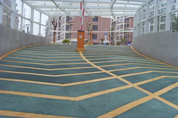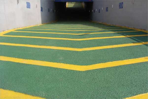 無震動止滑車道是由一種多棱角,硬度極高的礦物骨料及特種改性樹脂組合而成,具有優良的防滑、耐磨、抗壓、減震、減噪、排水、導向功能,美觀、舒適、耐候、抗老化。相對不同材質的同類車道,有著使用壽命長、性價比優等特點。