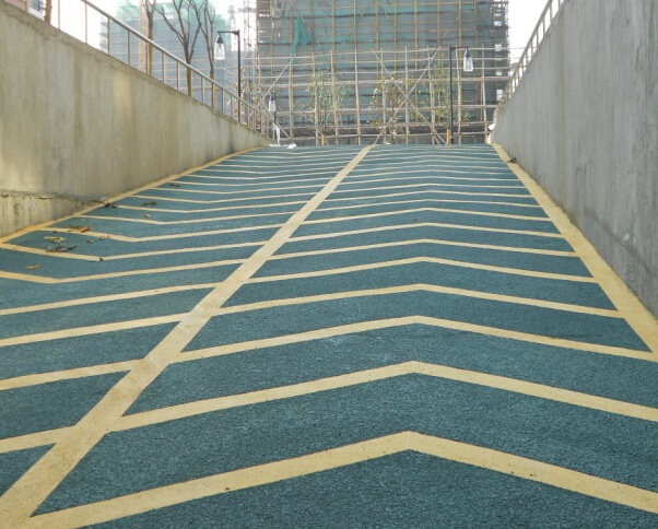 鴻坤無震動止滑車道材料適用于車庫坡道、道路、公交車道、自行車道、人行道等有特殊防滑要求的部位、區(qū)域。