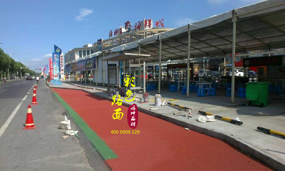 2.安全防滑,彩色路面鋪裝以后增加表面的摩擦系數,同時也增加了防滑功能,保證車輛行駛的安全性。