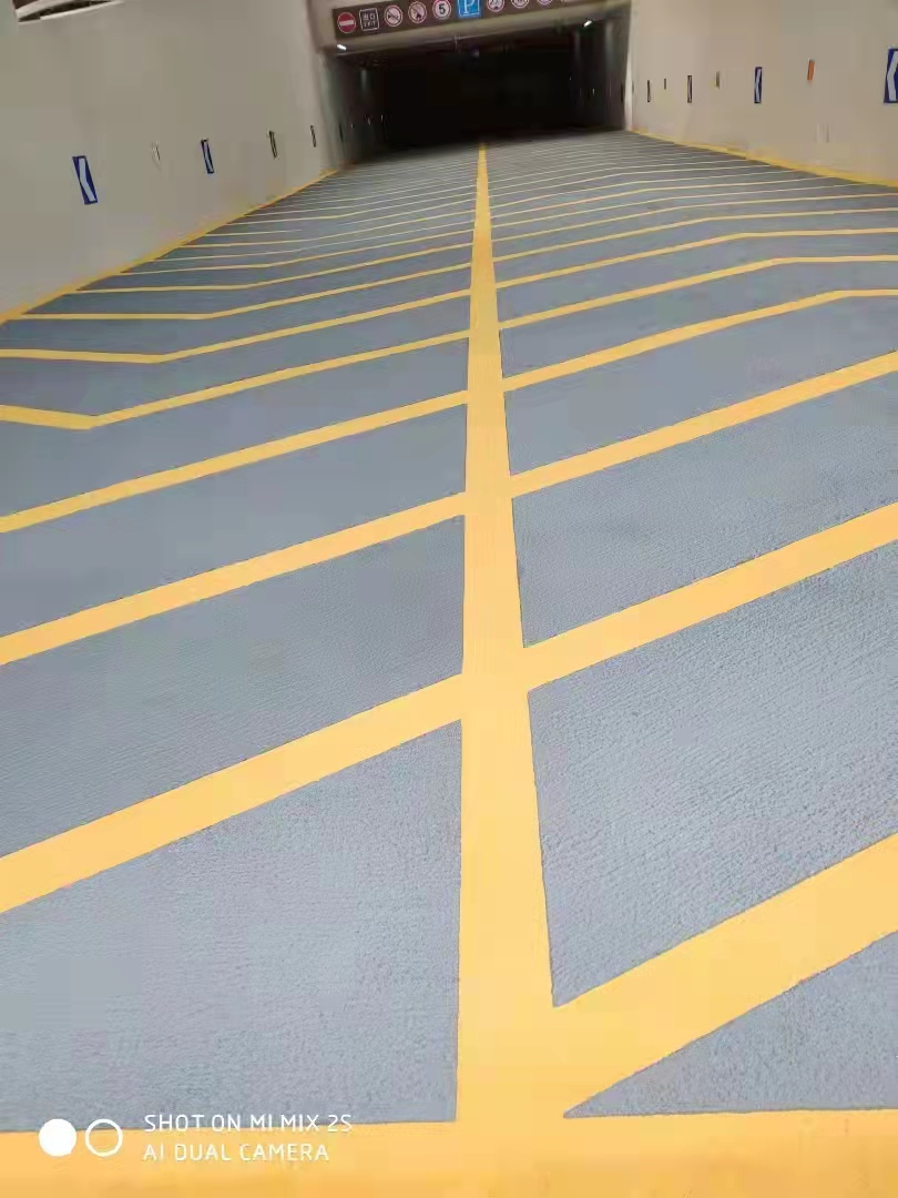 車庫進出口坡道施工一般分為2個部分,一部分是底層的換色抗壓層,保護基礎地面不被磨損,另一部分是面層的止滑層,增加表面的防滑效果,防滑耐磨。