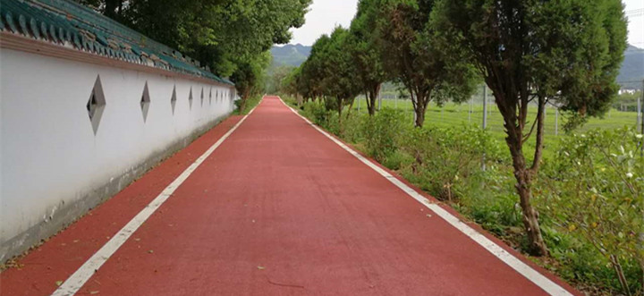 人行步道彩色路面施工簡單,根據厚度要求確定用量,材料用量確定后開始施工綠道樹脂批刮過程中滿撒彩色骨料,干燥后噴灑罩面劑即可。